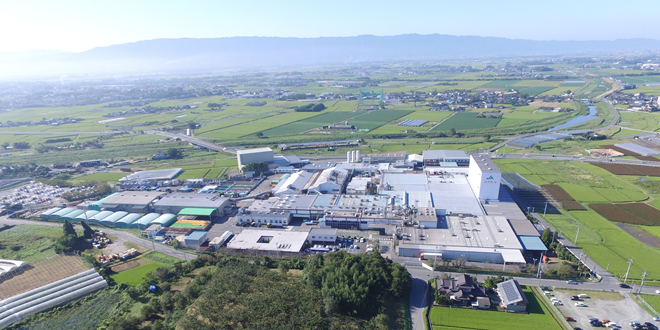 甘木工場の冷凍冷蔵庫の冷却設備は、ノンフロン化と省エネを同時に実現でき、温室効果が極めて小さい自然冷媒(アンモニア)を使用しています。