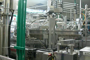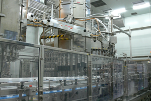 無菌充填の紙容器製品です。瞬間殺菌した後、直ちに冷却し無菌充填します。常温保存が可能です。果実・野菜飲料、豆乳飲料、茶・コーヒー等の飲料を125ml〜1000mlの容器に充填製造しています。1分間に一台あたり約100〜400個製造します。